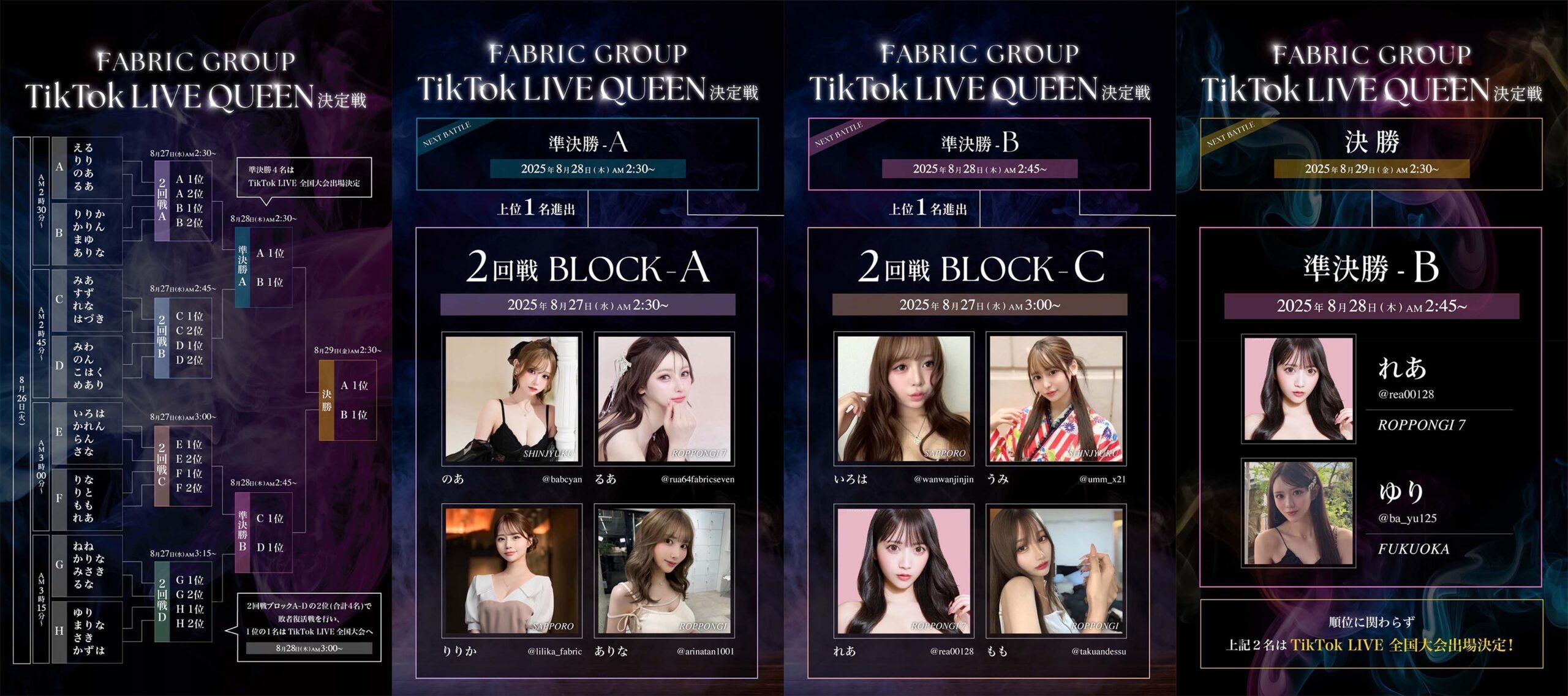 8/26〜8/29、TikTok LIVE のライブクイーンを決定する「FABRIC GROUP TikTok LIVE QUEEN決定戦」が開催されました。