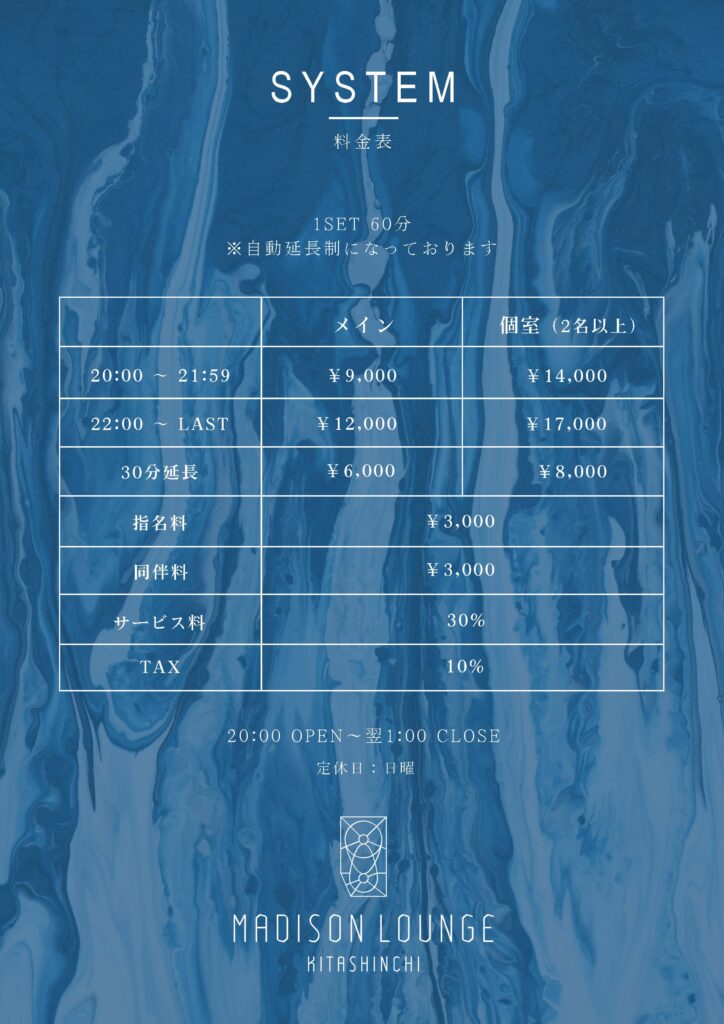 全3フロア、メインフロア17卓、個室は8部屋と北新地エリアでも最大級の大きさを誇る規模です。
